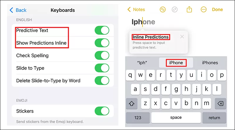 預測文本根據您的打字習慣建議單詞,這可以加快您的打字過程。和顯示內聯預測可以幫助您快速輸入單詞。