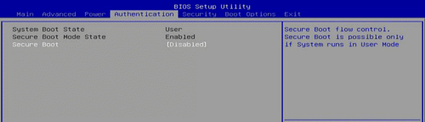 找到安全引導設置,如果可能的話,將其設置為禁用。可以在“安全性”選項卡,啟動選項卡或“身份驗證”選項卡中找到。