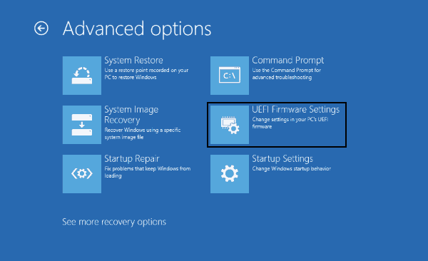 否則,您可以按住轉移單擊時鍵重新啟動登錄屏幕上的選項。 Windows將重新啟動到高級設置選項中,選擇故障排除>高級選項。從那裡,單擊UEFI固件設置S,應該帶您去所需的BIOS。