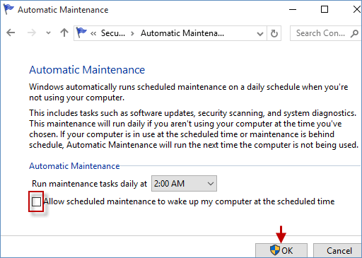 步驟3:在自動維護下,取消選中定期維護然後單擊好的按鈕到禁用自動維護。