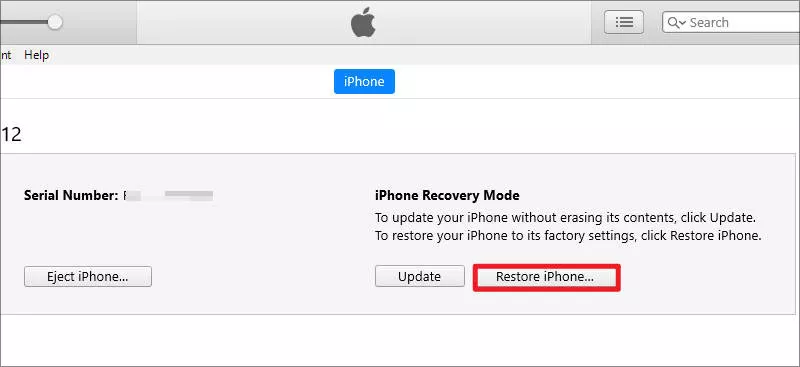 5. 按住鍵盤上的 Shift 鍵的同時單擊 iTunes 中的“恢復 iPhone”按鈕。