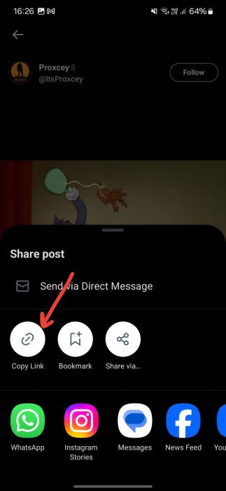 - 複製鏈接:從出現的菜單中,選擇“複製推文鏈接”。這會將鏈接複製到剪貼板。