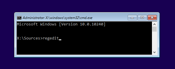 - 將計算機啟動至 WinPE。打開命令提示符並運行註冊表編輯器打開註冊表編輯器。