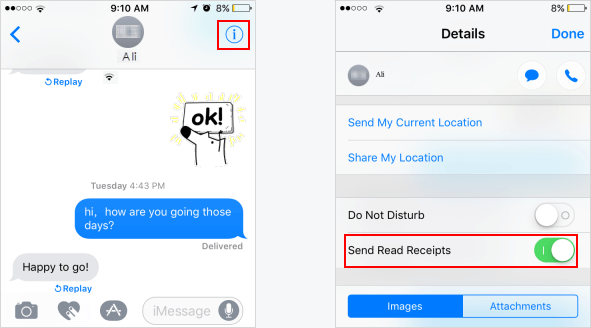 確保 iMessage 服務已開啟,否則,您找不到發送已讀回執選項。打開“發送已讀回執”後,iMessage 會在您閱讀消息後向發件人顯示。