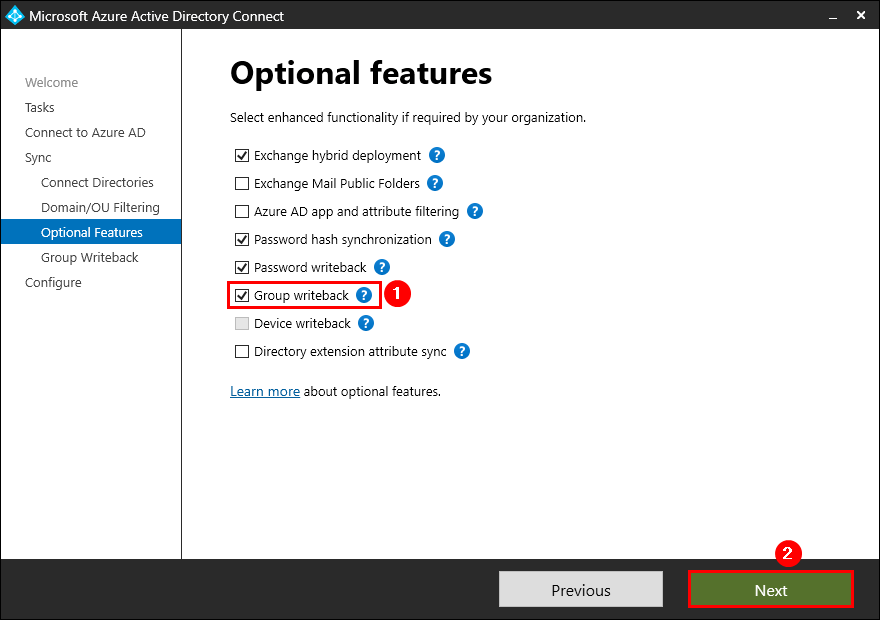 你必須至少有Azure AD 連接版本 2.0.89.0安裝或更高版本以在 Azure AD Connect 中啟用組寫回。