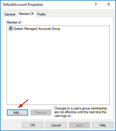 - 現在我們需要將該用戶添加到 Users 組中。單擊成員頂部的選項卡,然後單擊添加按鈕。