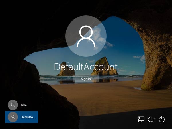 現在重新啟動計算機,您可以看到 DefaultAccount 用戶出現在 Windows 10 登錄屏幕上。