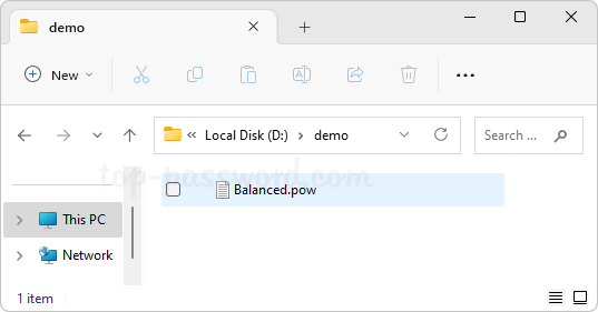 - 打開文件資源管理器並瀏覽到存儲 .pow 文件的位置。它實際上是一個二進制註冊表文件,保存了您所有的電源計劃設置,例如顯示、睡眠等。您可以將此文件傳輸到其他 Windows PC 以恢復您的電源計劃。