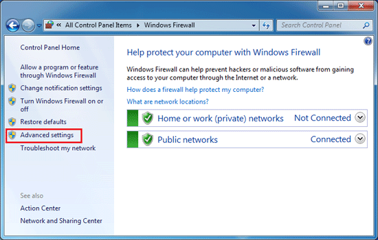 這將打開具有高級安全 MMC 管理單元的 Windows 防火牆。下行動在右側窗格中,您可以單擊相應的鏈接來導出策略、導入策略或恢復默認策略。