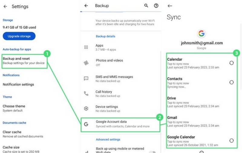 要獲取數據,請使用之前使用的備份技術。三星提供多種數據備份和恢復選擇,例如三星雲、Google Drive 和 Smart Switch。打開“設置”,點擊“帳戶和備份”,然後選擇合適的恢復選項來檢索您的聯繫人、照片、應用程序和其他重要數據。