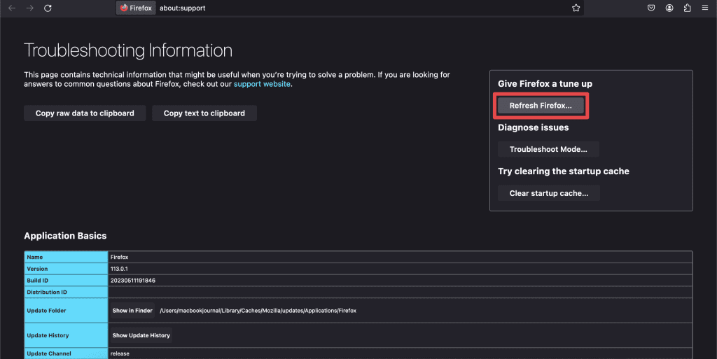 在本節中,我將指導您完成將Firefox重置為Mac上原始狀態的過程: