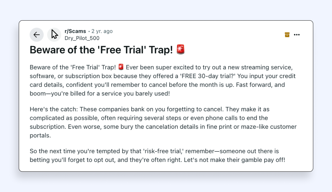 一些“免費試用”可能會悄然發生轉換的付費等級,這是流行的詐騙技術之一。刪除過期的發票可以幫助您在下一個賬單日期之前發現並取消這些隱藏費用。