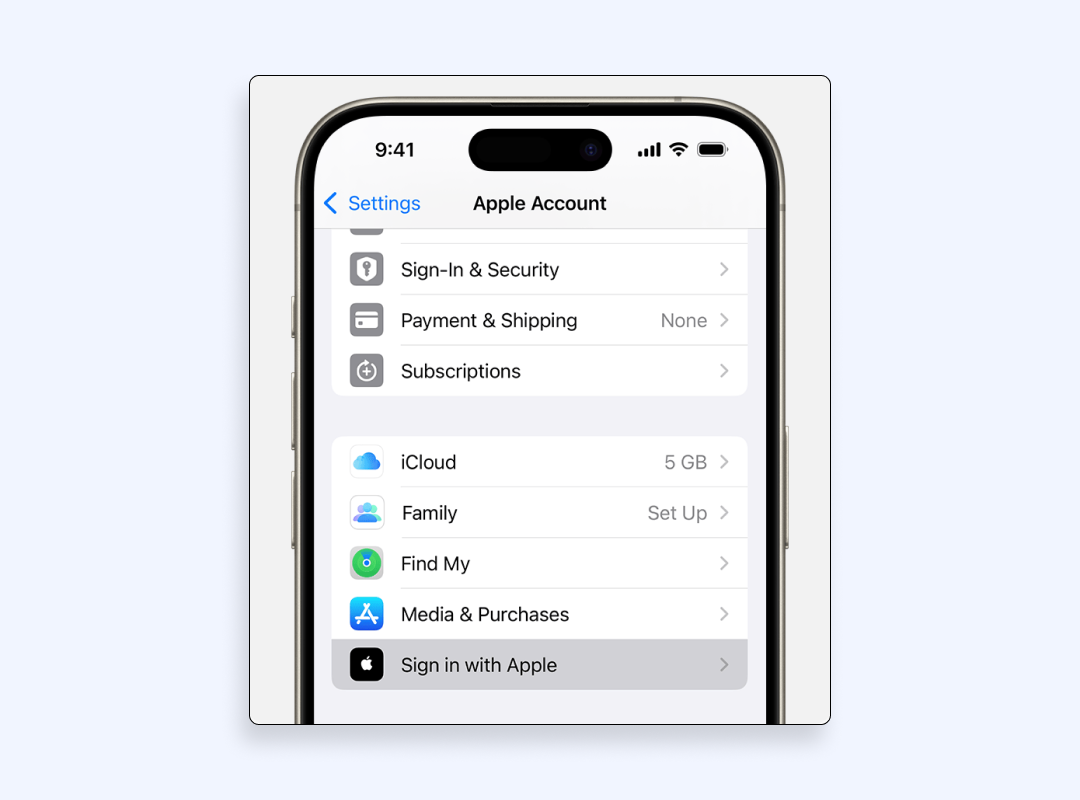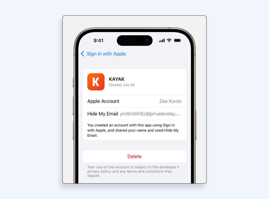 - 選擇一個應用程序,然後停止使用 Apple ID 即可結束關係。
