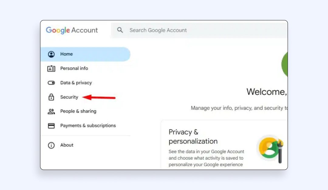 - 登錄並點擊您的個人資料照片 → 管理您的 Google 帳戶。