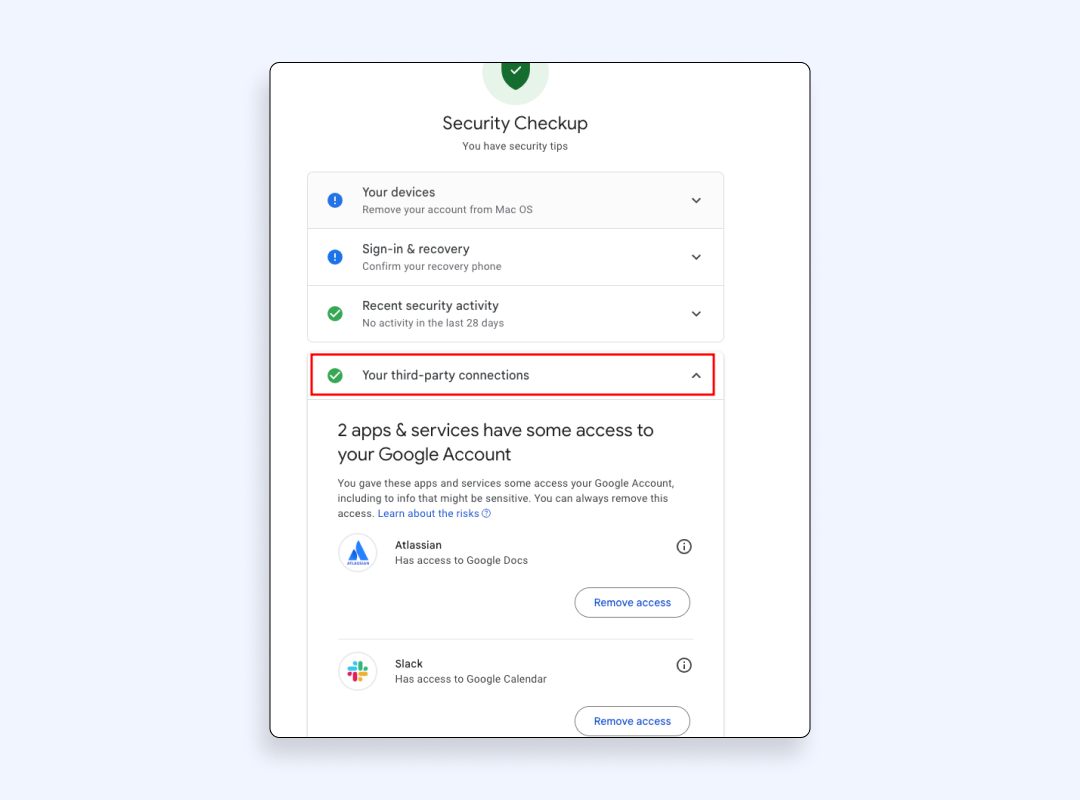 - 列出仍具有帳戶訪問權限的每個第三方應用程序或社交媒體帳戶。