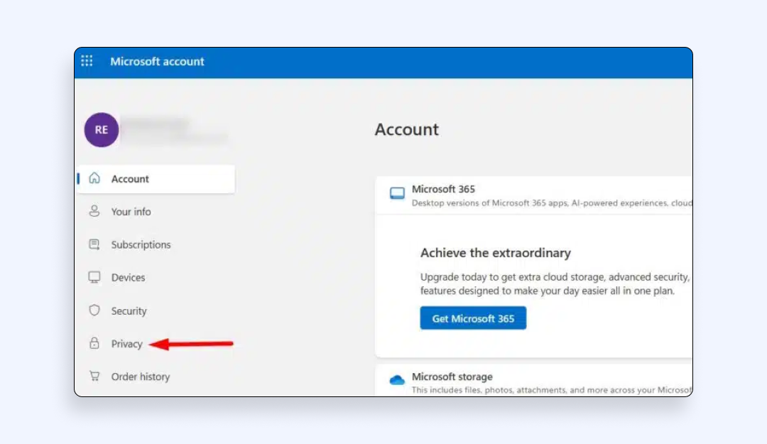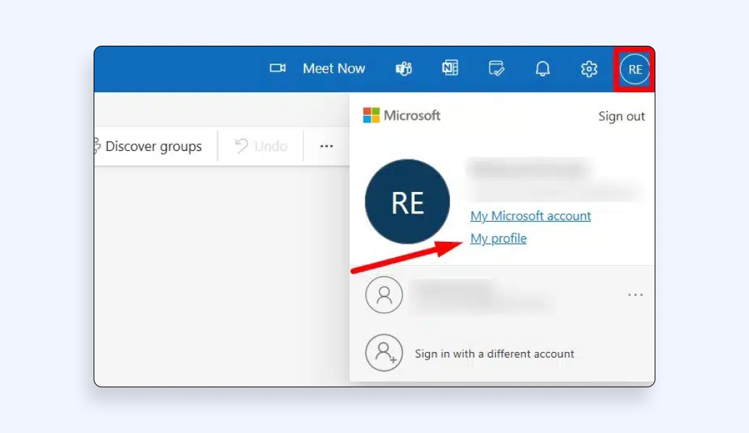 1. 登錄 Outlook.com,然後單擊您的頭像 → 我的 Microsoft 帳戶。