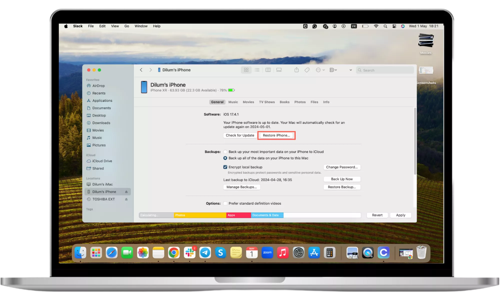 恢復出廠設置會刪除 iPhone 中的所有數據,因此在繼續之前必須將設備備份到 iCloud 或電腦。