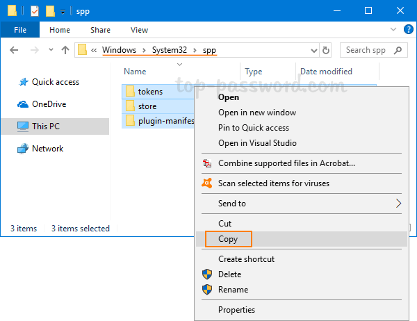 如果仍然無法恢復 Office 產品密鑰,最後的方法是在重新安裝 Windows 或 Office 之前備份 Office 激活,以便稍後重新激活。為此,請打開文件資源管理器並瀏覽到以下位置:C:\Windows\System32\spp。對其所有文件夾/文件進行備份並將其保存到外部 USB 驅動器以便安全保存。