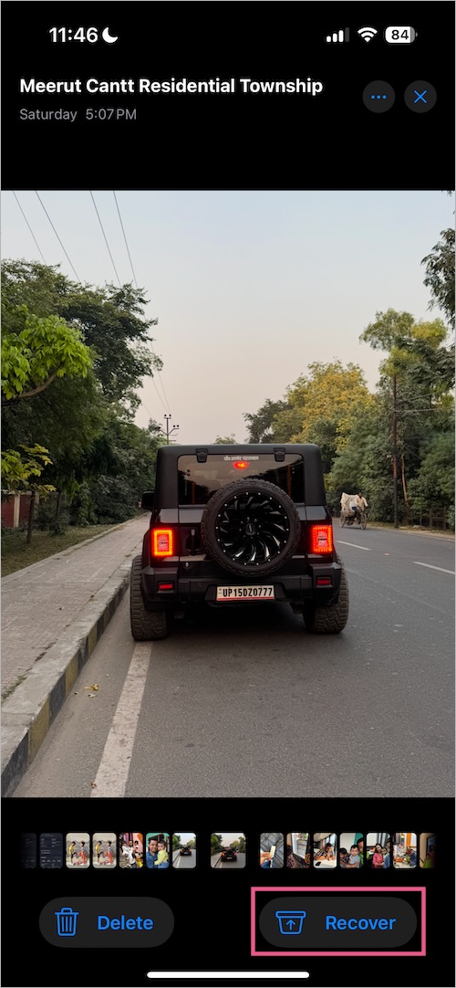 - 要恢復,請點擊 '恢復”並選擇“恢復照片”。要一次恢復多張照片,請點按“選擇' 在頂部並選擇所需的項目。然後點擊右下角的省略號按鈕(3 個點)並選擇“恢復”。確認繼續。