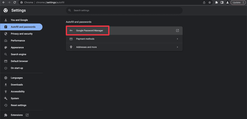 - 選擇自動填充和密碼在左側邊欄中。