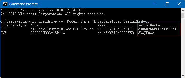 步驟 3:您現在將看到列出的硬盤驅動器標籤(名稱)和序列號。