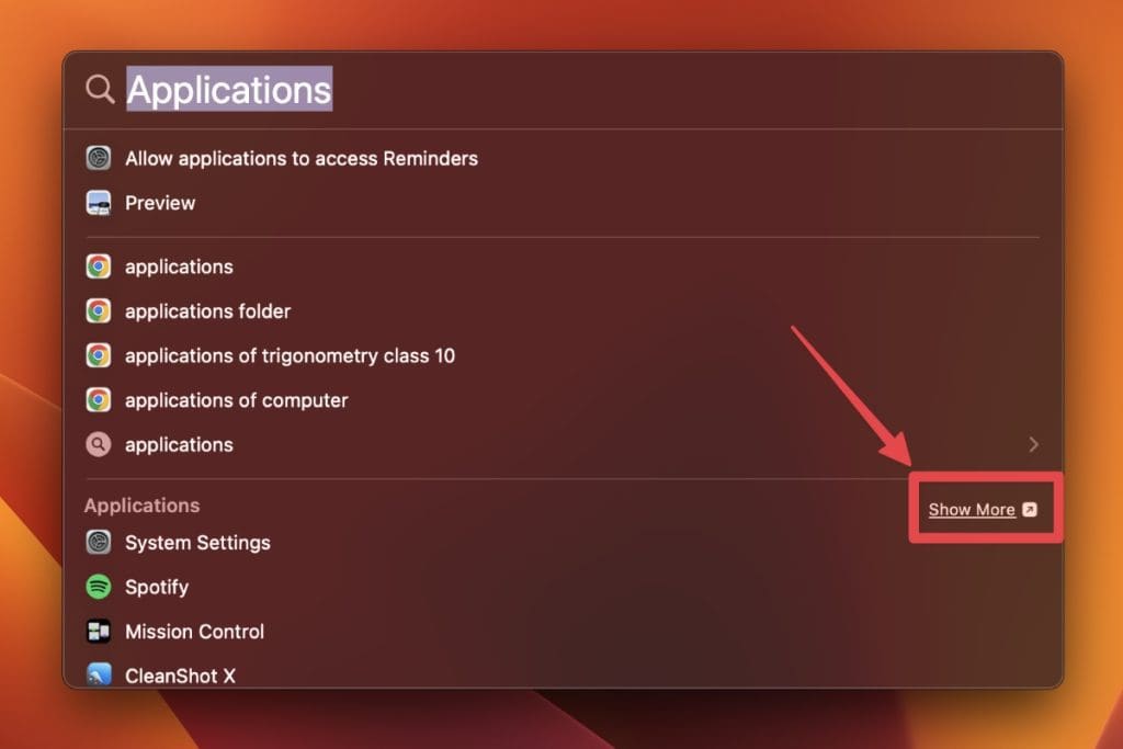- 單擊顯示更多搜索結果旁邊的按鈕申請啟動應用程序文件夾。