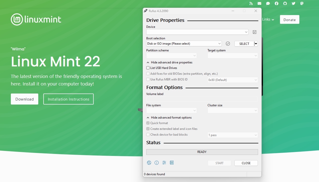 - 使用輔助 PC 下載 Linux Mint 並創建可啟動安裝媒體。