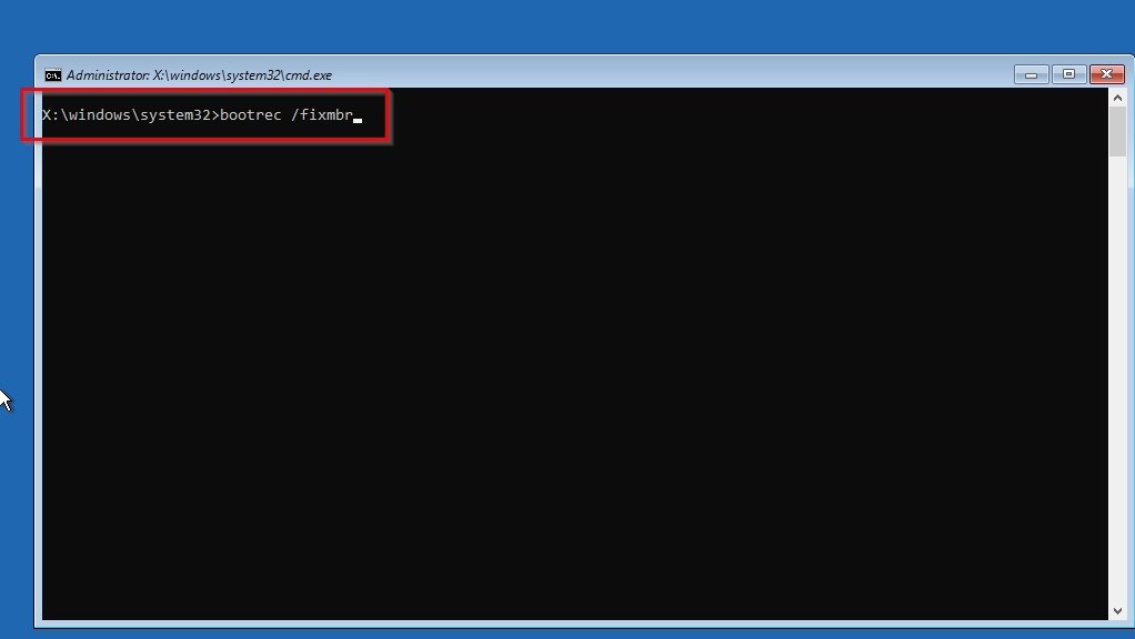bootrec /fixmbr修復 MBR。退出並重新啟動電腦以檢查是否解決了問題。
