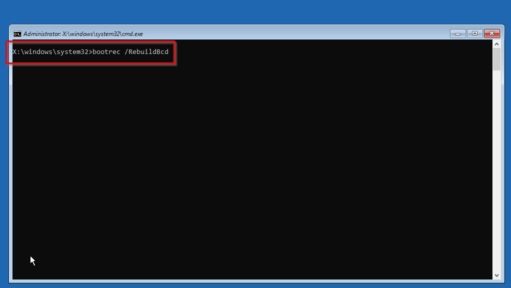 bootrec /fixboot和bootrec /rebuildbcd反而。它們分別是 a) 將新的引導扇區寫入系統分區和 b) 重建 BCD 存儲(存儲可引導操作系統的列表)。