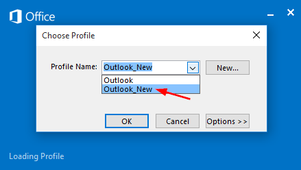 - 現在重新啟動 Outlook 應用程序。當提示您使用配置文件時,選擇您的新配置文件並單擊好的。