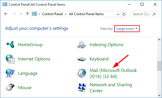 - 打開控制面板並設置查看方式選項大圖標。點擊郵件(32 位)。