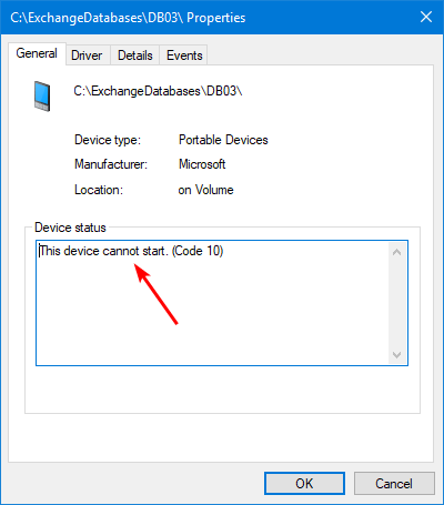 上一般的選項卡,你會看到設備狀態:該設備無法啟動。 (代碼10)