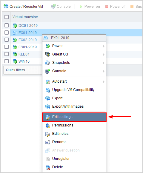 - 右鍵單擊虛擬機並選擇編輯設置。