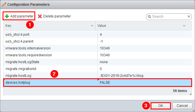 要刪除可移動設備上的熱插拔功能並使警告消失,您需要按照以下步驟向虛擬機配置添加參數: