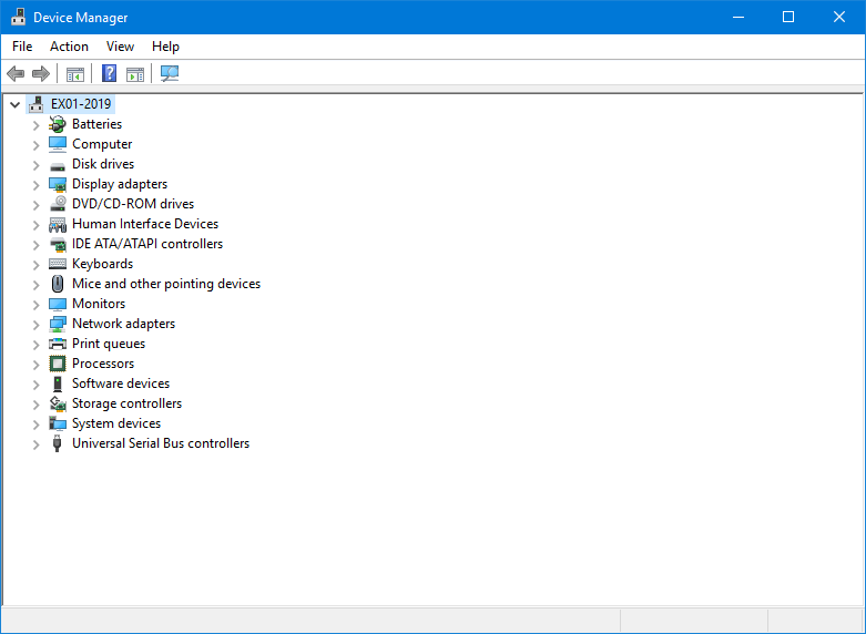虛擬機啟動後,打開裝置經理並驗證便攜式設備部分不再存在。