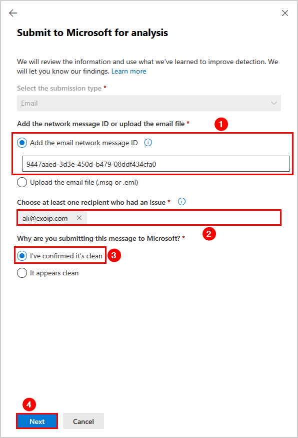 您必須首先按照以下步驟將郵件提交給 Microsoft 進行審核: