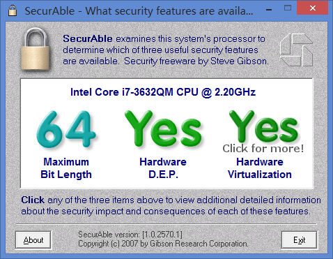 如果 XD/NX 支持選項的 BIOS 設置在您的系統上不可用,您可能需要聯繫製造商來更新 BIOS。請注意,某些較舊的處理器可能不包含這些功能,並且與 Windows 8 不兼容。如果您想檢查 XD/NX 是否可用或在您的系統中啟用,您可以下載安全這會告訴你。