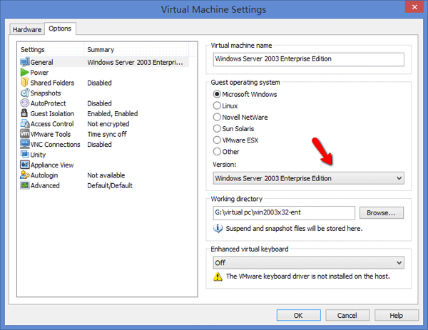 然而,根據我的經驗,即使我在主機操作系統的 BIOS 中啟用了“數據執行保護”和“虛擬化技術 (VT)”功能,從 Windows 8 ISO 映像啟動 VMware 虛擬機時仍然會收到 0x0000005D 錯誤。最終我通過更改VMware Workstation虛擬機設置下的操作系統版本修復了該錯誤。