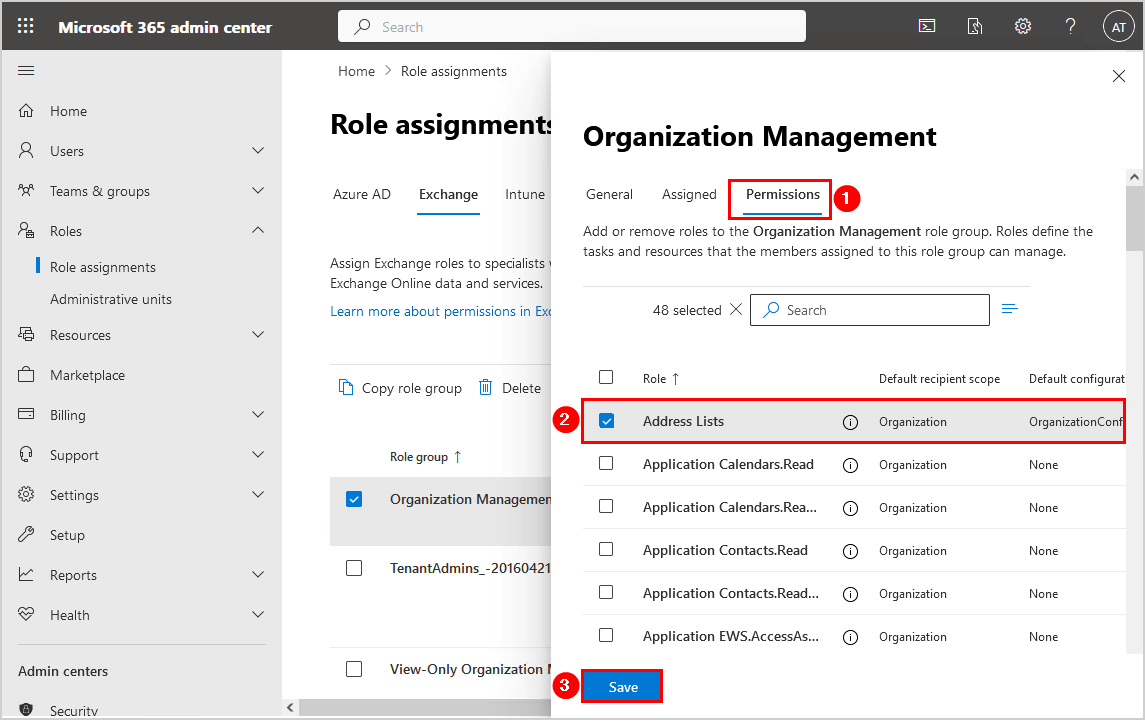 在 Microsoft 365 管理中心分配地址列表角色