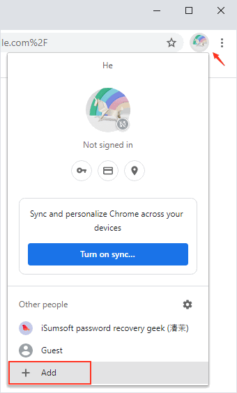步驟1打開 Chrome 並單擊您的帳戶圖標(右上角)。