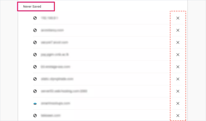 步驟3向下滾動密碼列表到從未保存過部分 - 然後您可以刪除您希望 Chrome 再次開始保存(並自動填充)的網站。