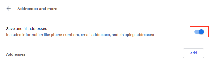 步驟5轉到地址和更多部分,啟用保存並填寫地址開始自動填充以前保存的地址並保存(並自動填充)新地址。