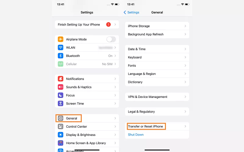 步驟一:輕敲設定>一般的>轉移或重置 iPhone。