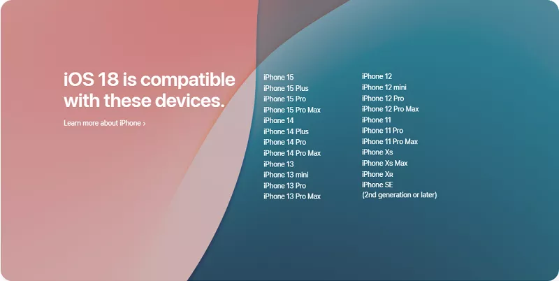據蘋果公司稱。這裡有一個列表供您檢查您的設備是否支持 iOS 17/18