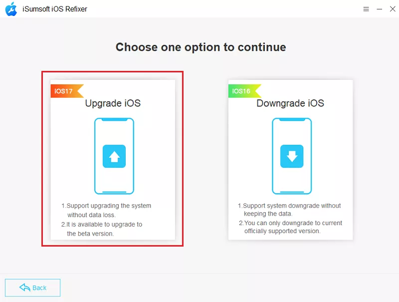 步驟2:安裝完成後,啟動軟件並選擇iOS 升級/降級。