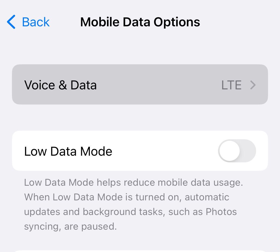 - 轉至設置 > 移動數據 > 移動數據選項 > 語音和數據。