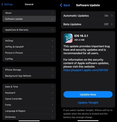 您應該尋找的是更新後的補丁發布,例如17.4.1,,,,18.2.1,或蘋果接下來推動的任何次要釋放。這些子點更新帶有背景修復程序,更加穩定,並且經常解決諸如Face ID之類的問題,更新後不響應或失敗。