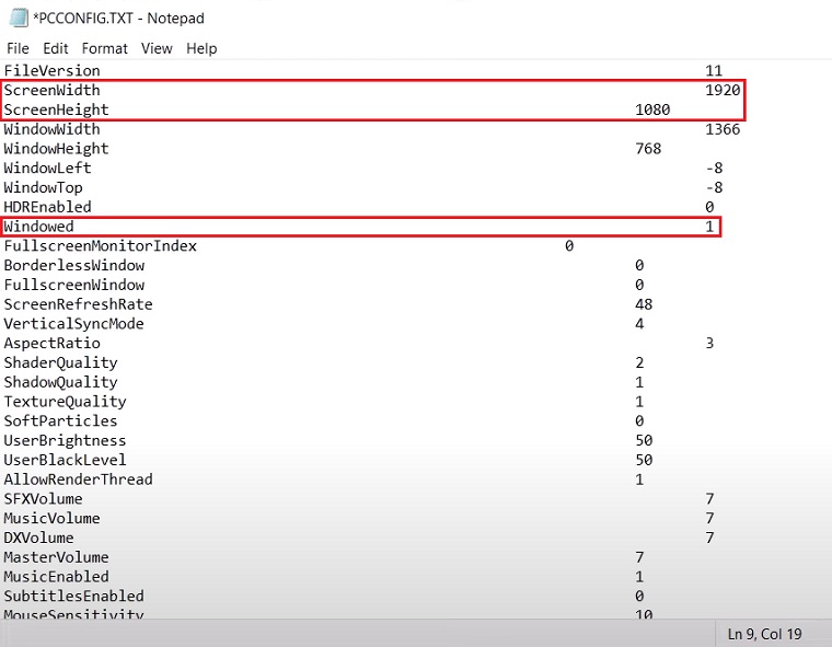 - 根據您的屏幕分辨率調整此文本文件中的遊戲分辨率。