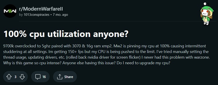來源:用戶在 COD 現代戰爭中面臨 100% CPU 使用率