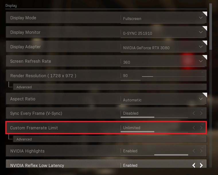 5. 在《現代戰爭》的顯示設置中設置幀率限制